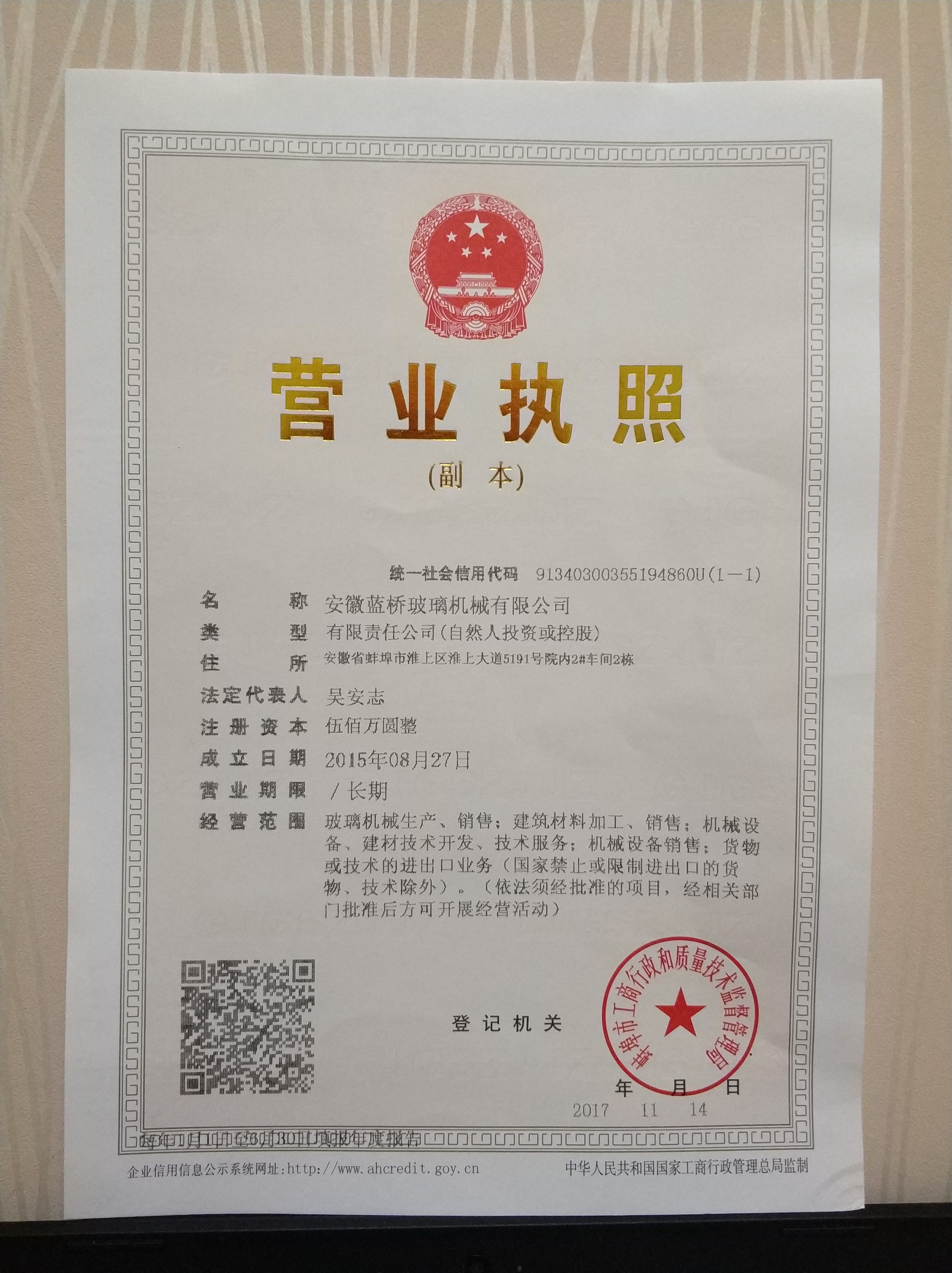 安徽蓝桥玻璃机械有限公司,是中国较有代表性的专业玻璃切割流水线设备生产商,是一个具有一定规模和生产能力的玻璃深加工设备专业生产厂家。公司采用国际较新科研成果、先进的玻璃切割机械。专业生产全自动玻璃切割机、全自动玻璃上片台、掰片台、倒片台以及各种类型玻璃切割刀轮、刀具等。产品适用于建筑、中空、门窗、家具、家电、太阳能、工艺品、平板压花玻璃等各类玻璃的切割生产。
