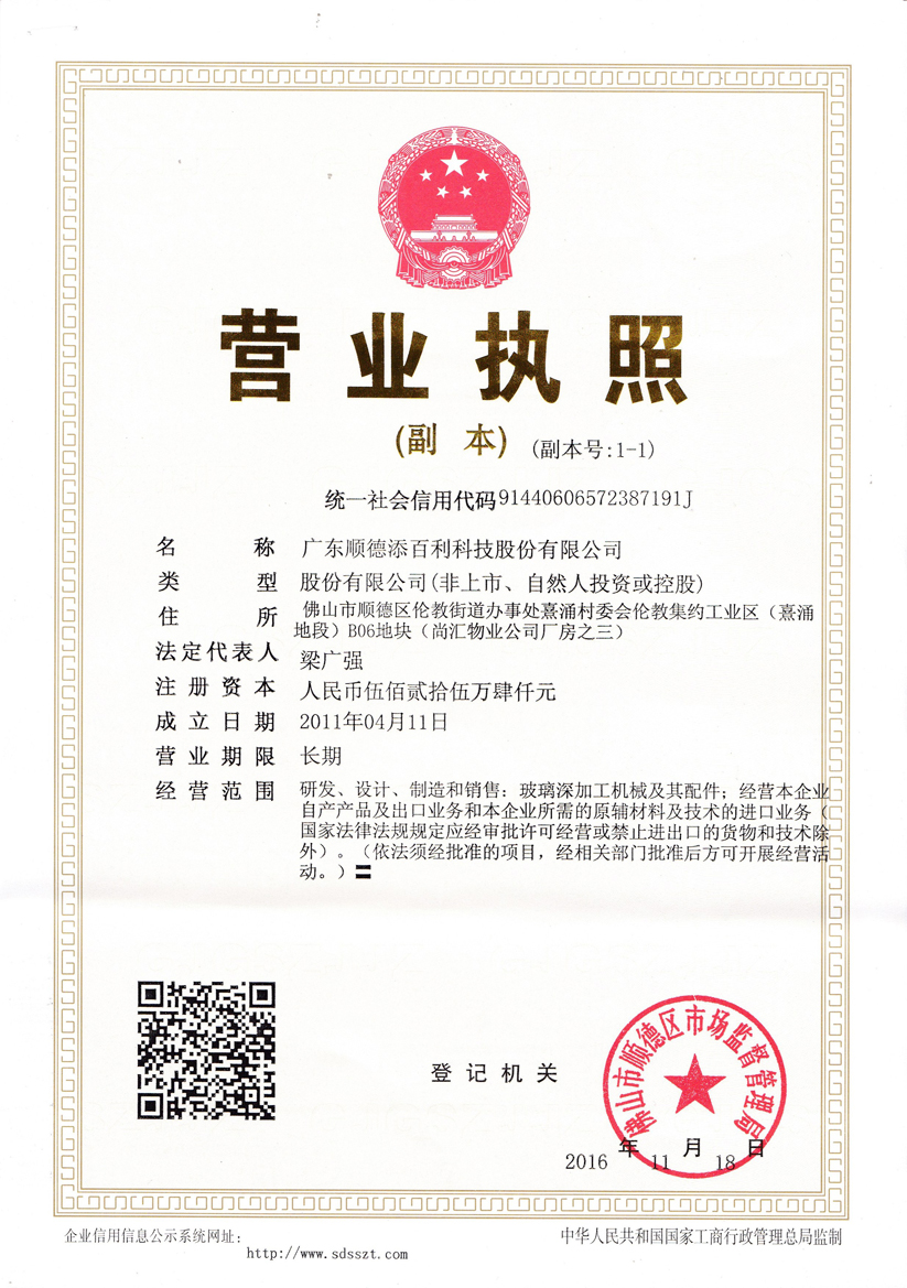 广东顺德添百利科技股份有限公司位于顺德区伦教工业区,是一家拥有多项世界技术,并自主研发、生产和销售玻璃钢化设备的创新型企业。我司生产的玻璃钢化炉,以其的节能技术和高品质的玻璃钢化效果得到了客户的一致好评。我司在2012年成功开发出2mm玻璃全钢化技术。我们秉承“质量至上、用户至上、信誉至上”的宗旨,为广大客户提供技术,质量稳定的玻璃深加工设备。