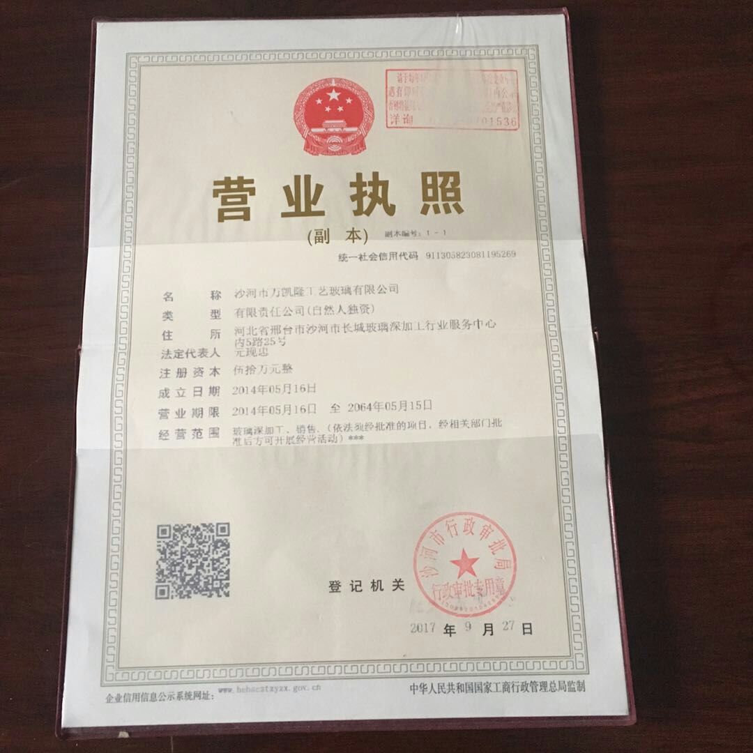 沙河市万凯隆工艺玻璃有限公司位于“中国玻璃之城”-沙河市,是一家能单独设计,研发,自主生产和销售各种精工磨边玻璃时尚拼镜深加工企业。公司拥有先进的生产设备和雄厚的技术力量,在公司的团队协作努力下,生产出高精度艺术拼镜,打破了传统审美理念,与时下较流行的装饰风格接轨,深受国内有名设计师的青睐,并应用于国内知名企业的建筑装饰,得到新老客户的一致好评。沙河市万凯隆艺术玻璃有限公司作为中国家装玻璃拼镜知名企业,始终为开拓艺术拼镜,玻璃深加工等产品而不懈努力,我们愿与各界同仁,携手共进,共创辉煌。