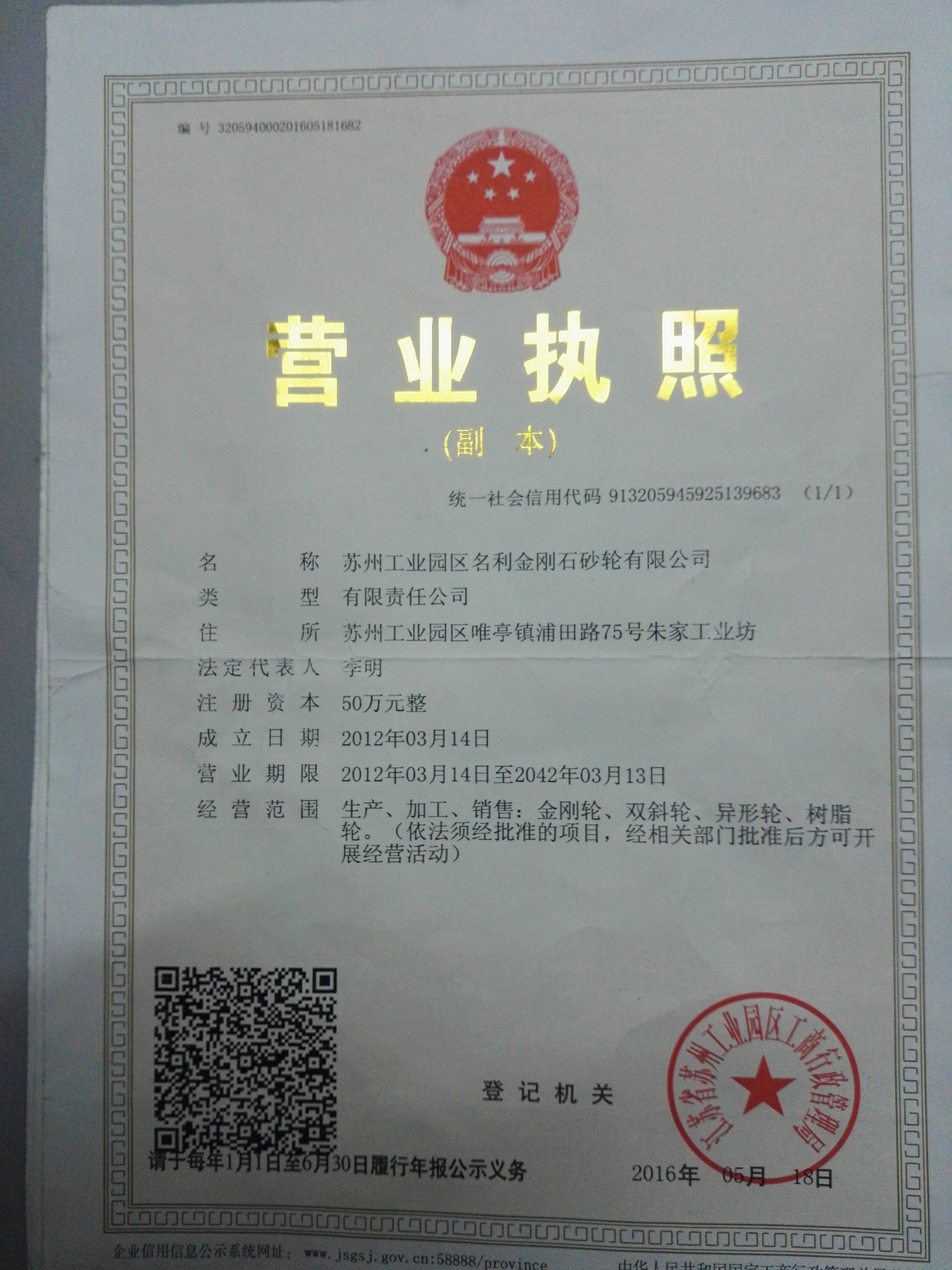 苏州工业园区名利金刚石砂轮有限公司