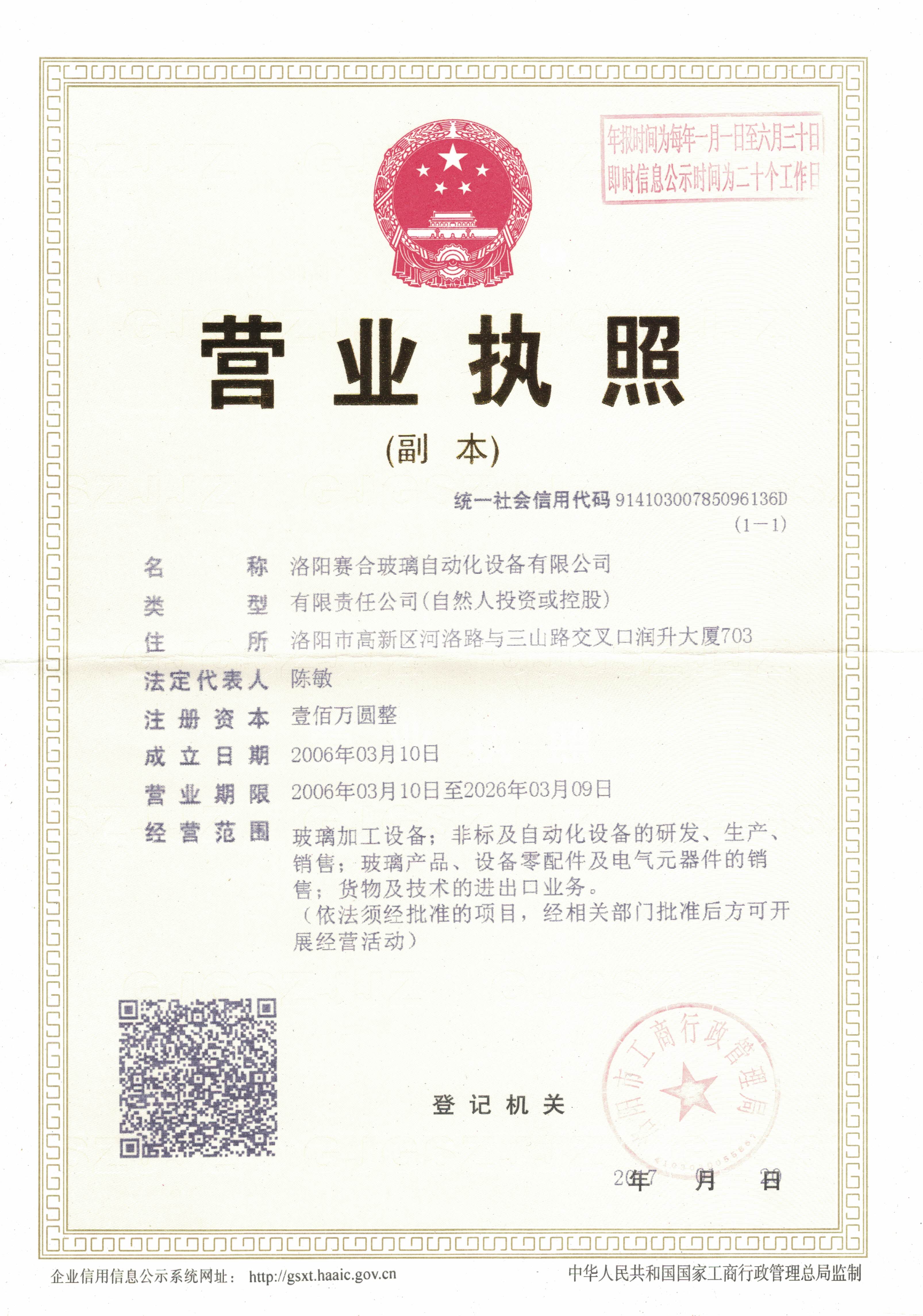 洛阳赛合玻璃自动化设备有限公司是有经验研发制造玻璃热加工设备的高技术公司,拥有数条大型平弯钢化生产线的实习培训基地,几十年大型设备制造经验的配套工厂,从事玻璃深加工十多年的有经验技术队伍。凭借丰富的经验,不断的创新,精湛的设计,集众家之所长,精心打造价位合理,品质优越,性能可靠的新型钢化玻璃加工设备;我们不仅可以提供常用基本型及其组合型钢化玻璃机组,也可根据用户要求,设计制造特殊规格玻璃钢化生产线;亦提供玻璃深加工技术咨询和服务、人员培训、熟练工输送、设备改造、生产线整体规划和设计。公司坚持“靠质量回馈效益,凭信誉寻求发展”的经营理念,在“技术,不断超越,实用为本,服务一体”的企业精力指导下,一如既往的贯彻“让用户明明白白投入资金,轻轻松松使用,高高兴兴收益”的企业宗旨。愿与业内朋友一道携手共济,共同发展。